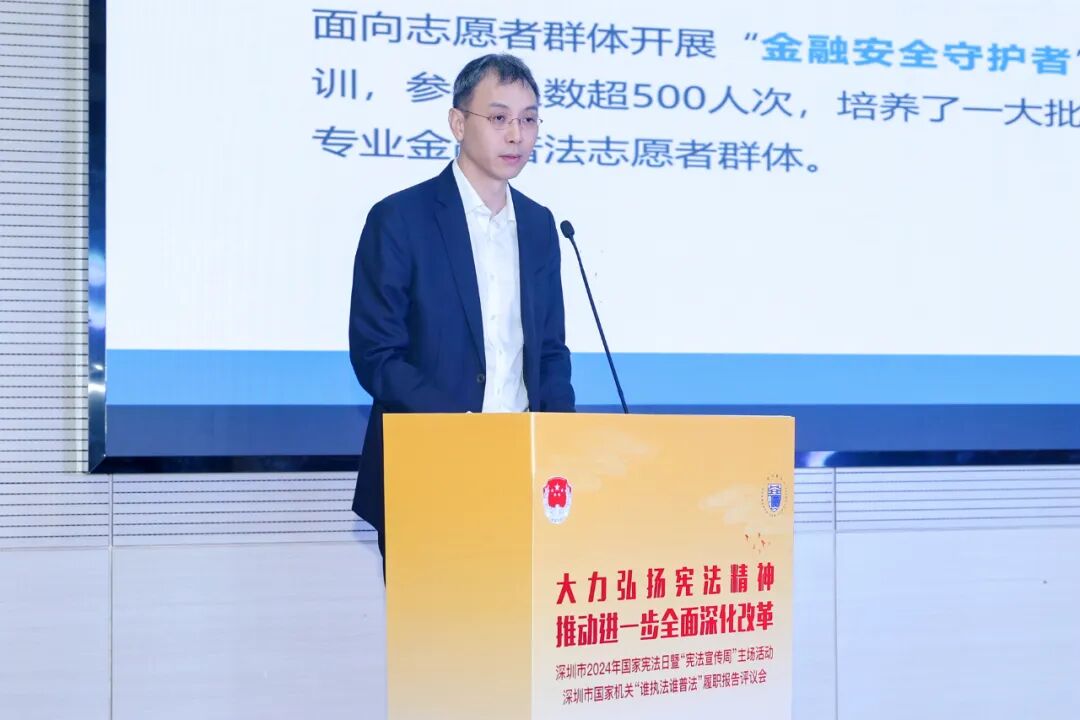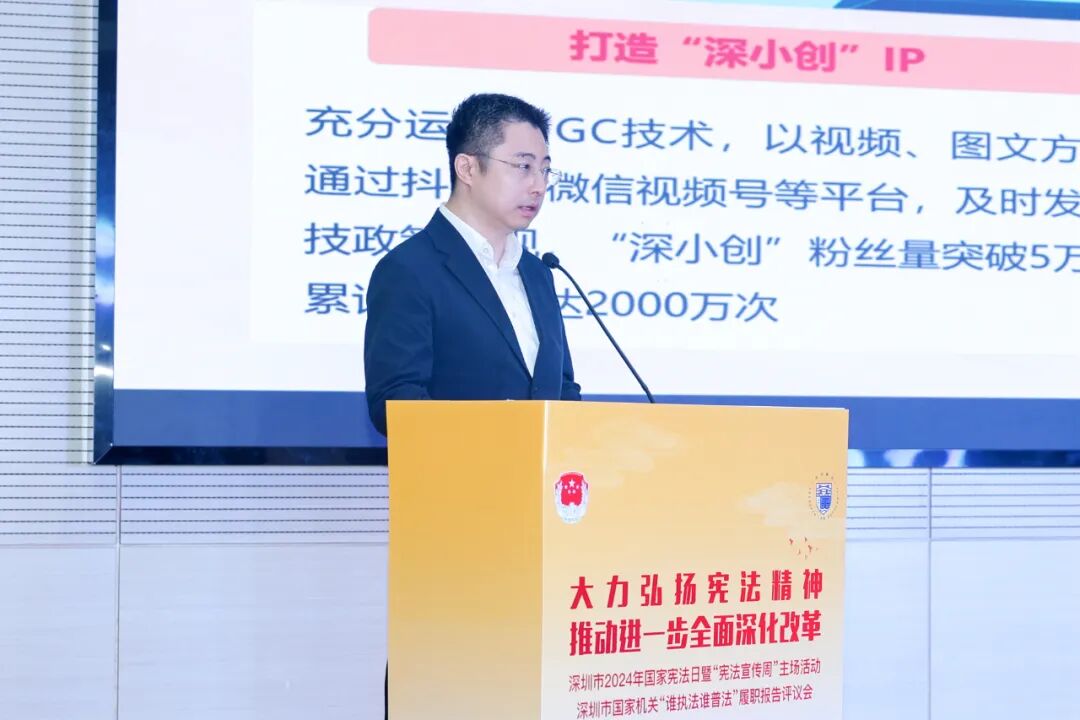2024年,市委统战部、市科技创新局、市规划和自然资源局、市地方金融管理局、深圳海事局等五家单位参与深圳市国家机关“谁执法谁普法”履职报告评议的全过程,并作为年度评议对象在会上作普法责任制落实情况履职报告,接受评议团和各单位的现场评议。