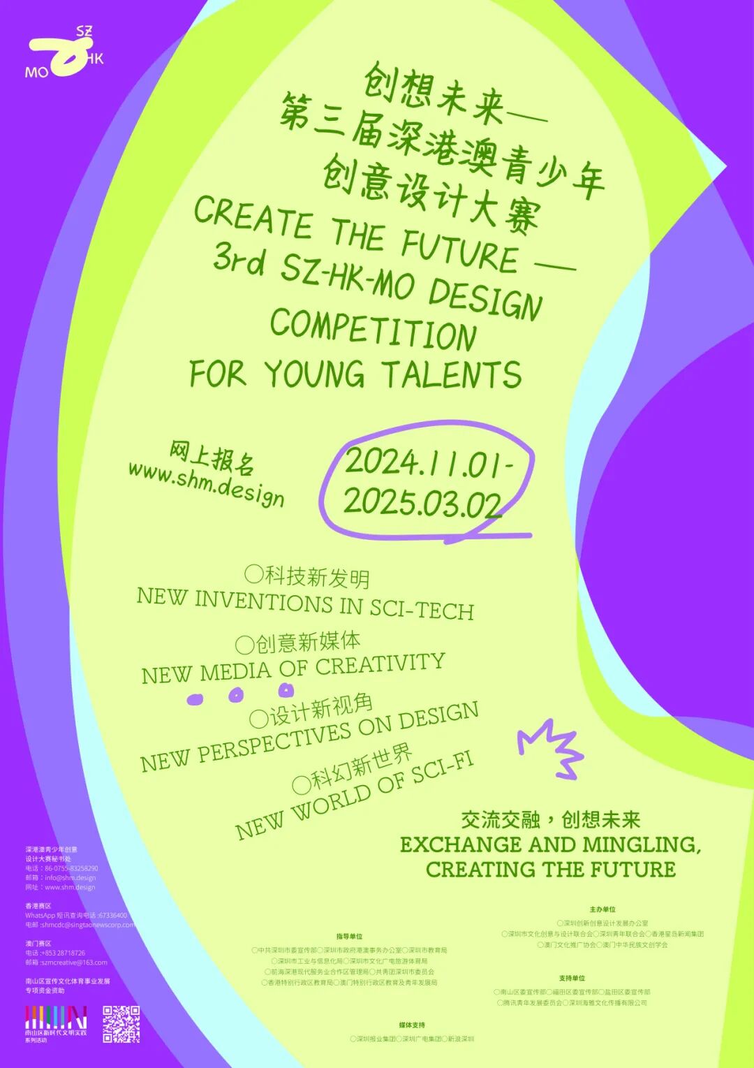 近日,深圳市教育局发布《深圳市教育局关于组织申报第三届深港澳青少年创意设计大赛的通知》(简称《通知》)。《通知》指出,为落实中共中央、国务院《粤港澳大湾区发展规划纲要》要求,推进粤港澳大湾区在培养培训、师生交流、技能竞赛等方面深入合作,支持港澳青少年融入国家、参与国家建设,由深圳市教育局指导的创想未来——第三届深港澳青少年创意设计大赛已于近期开启深港澳三地作品征集。