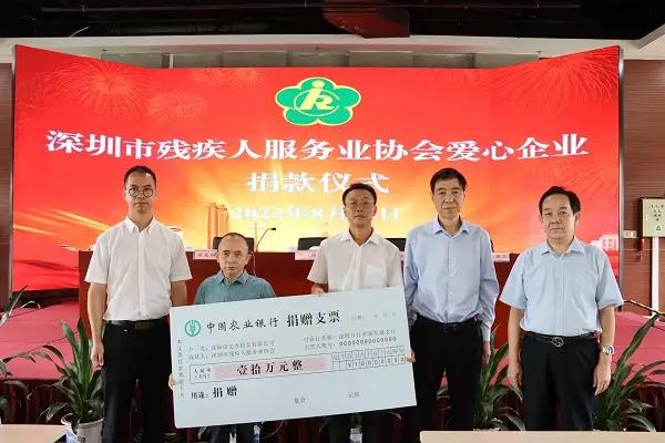 2022年,陶为文捐款助力深圳残疾人事业发展。(左二为陶为文,照片由受访者提供)