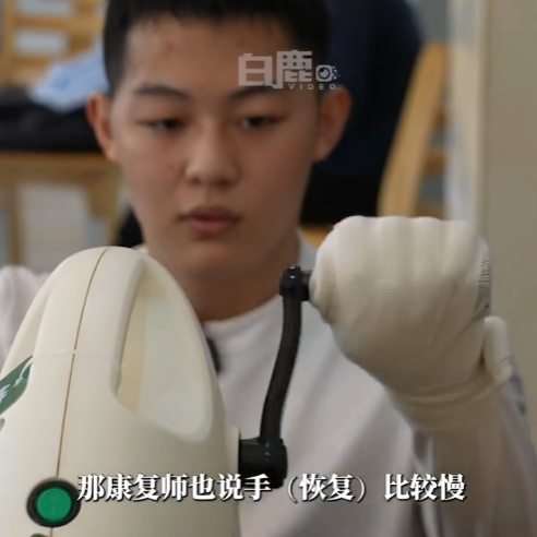 今年11月,“山东小钺钺”接受采访时仍在康复医院进行治疗,他说自己目前左侧偏瘫,一直在训练手、胳膊、腿,走路还行,手不太行,康复师也说手会恢复得比较慢。