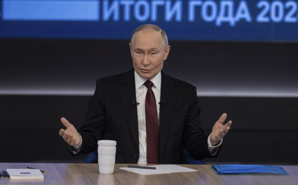 12月19日,在俄罗斯首都莫斯科,俄罗斯总统普京在“年度盘点”活动上讲话。新华社记者白雪骐摄