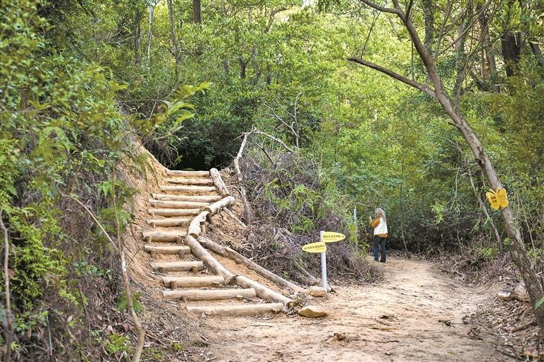 深晚记者亲测,这段主线2.48公里的郊野径,交通便利,蜿蜒曲折的各类手作步道,曲径通幽。一个多小时就可以轻松走完,适合周末带上娃,一起沉浸在大自然的怀抱中。
