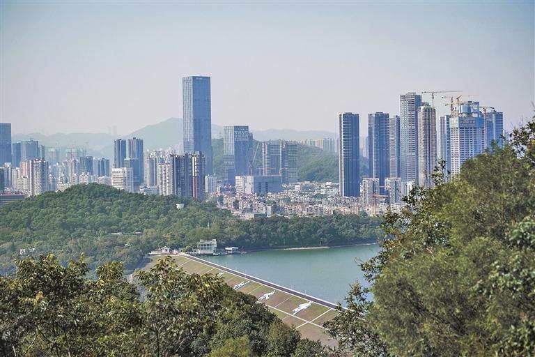 登高望去,深圳水库与罗湖街景尽收眼底。