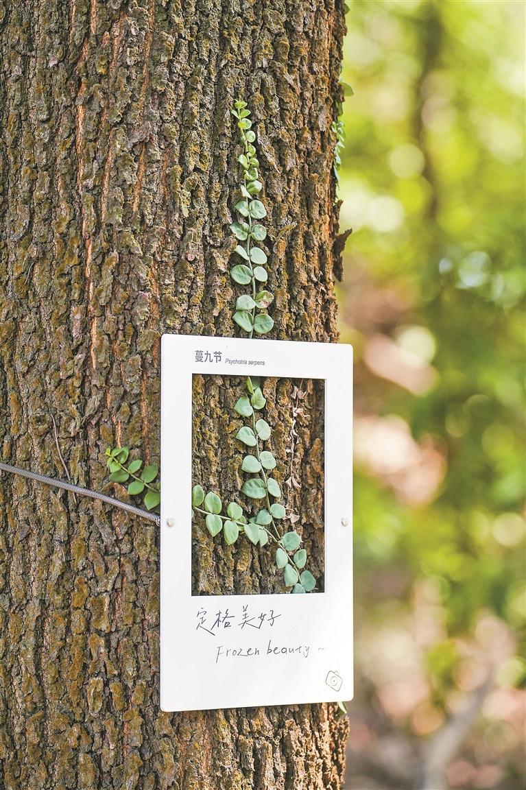 树干上设有植物的拍照打卡框。