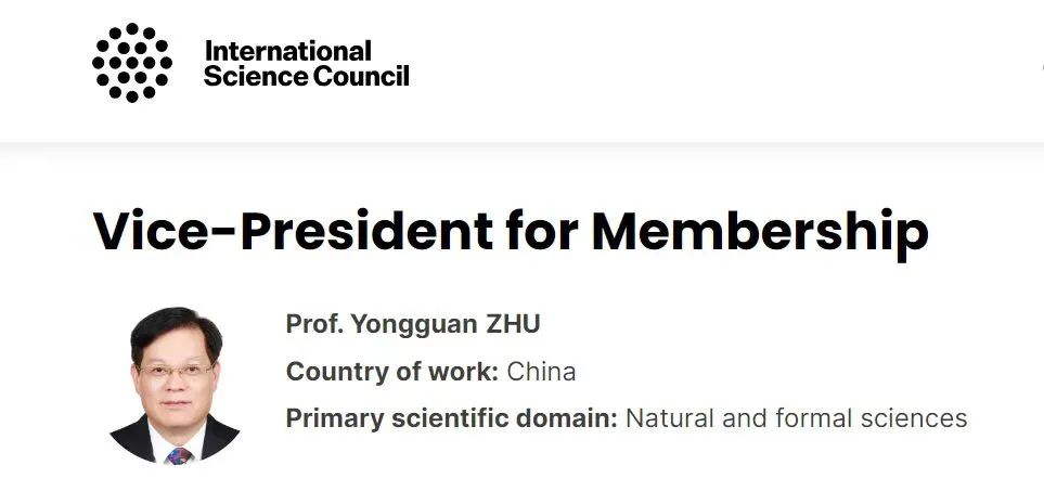 12月20日,国际科学理事会(International Science Council,简称ISC)官网正式公布,由中国科协推荐的中国科学院院士朱永官以高票当选会员事务副主席,任期为2025—2028年。