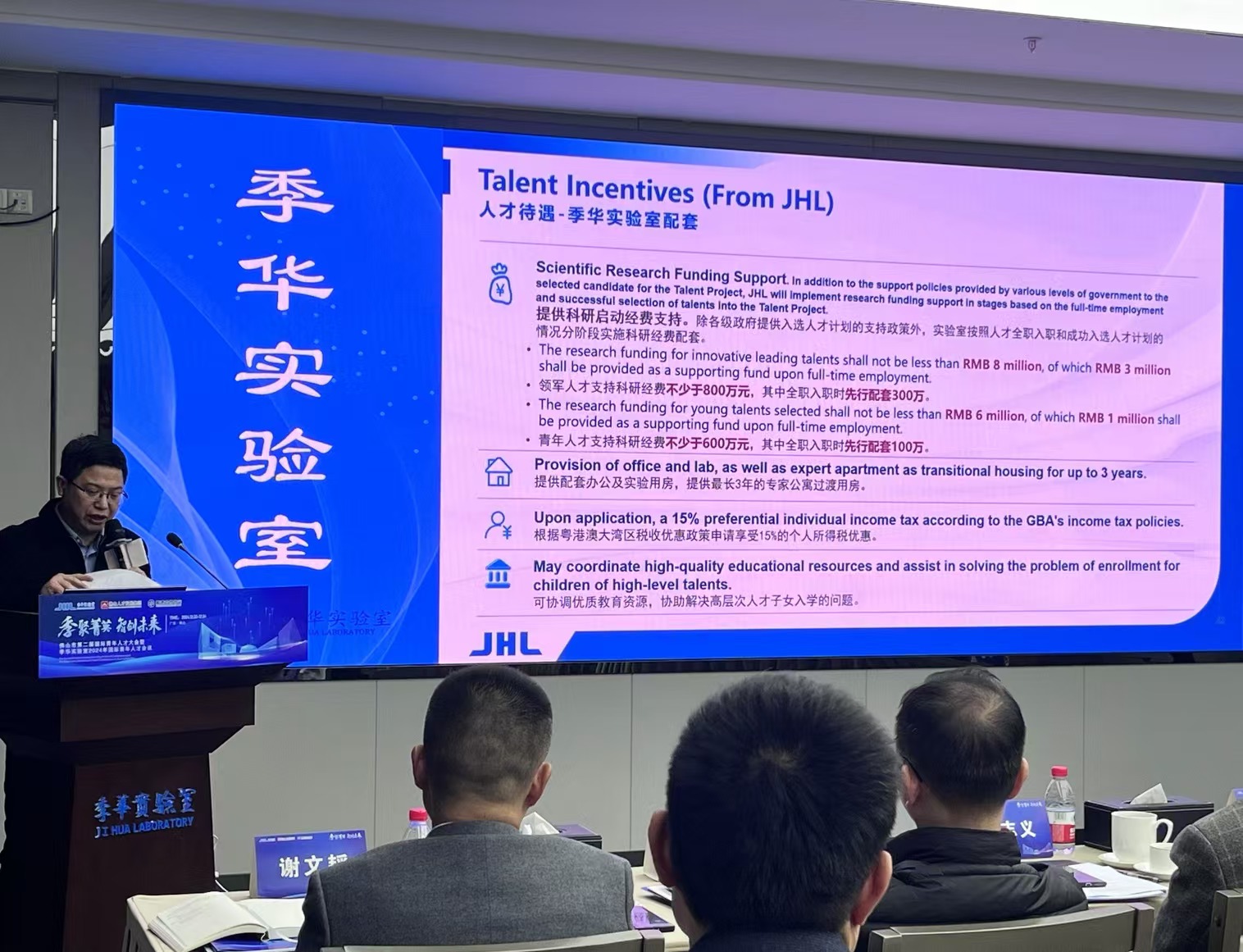 季华实验室人力资源处处长袁江勇介绍引才政策。