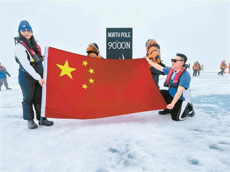 2023年,姚静母子成功登陆北极点,身穿深圳校服展示五星红旗。