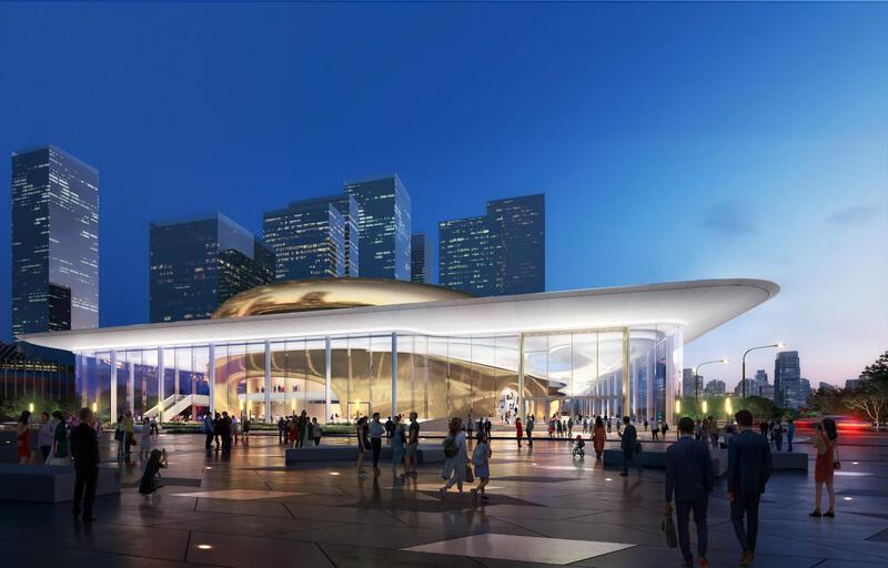 国际演艺中心位于福田区香蜜湖中区,坐落于山海连廊之中,将成为一个极富象征意义的地标性建筑。项目以“未来梦幻演艺中心”为核心理念,旨在打造世界一流的综合性表演艺术殿堂、国际文化艺术交流平台、市民向往的文化客厅和艺术打卡地。