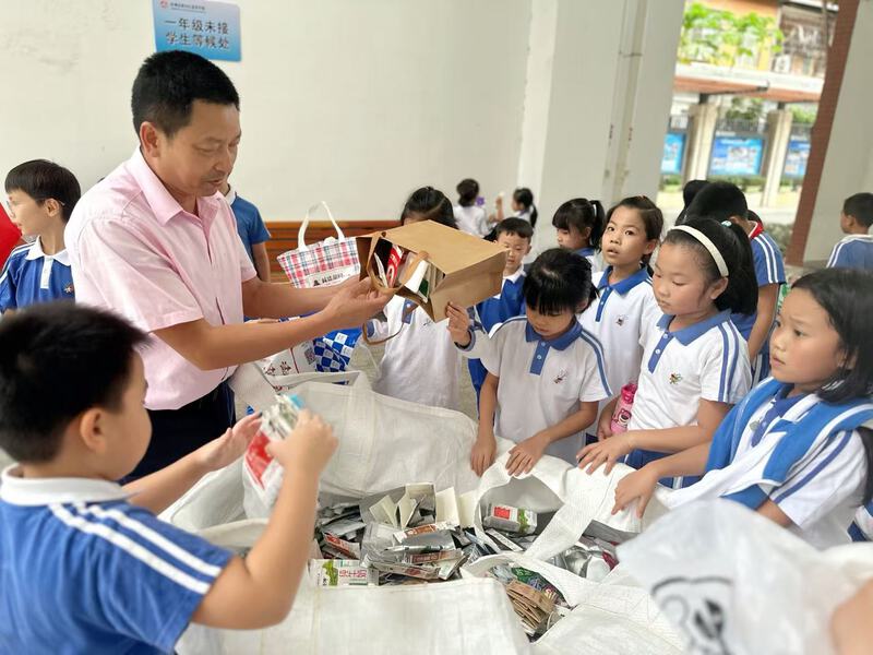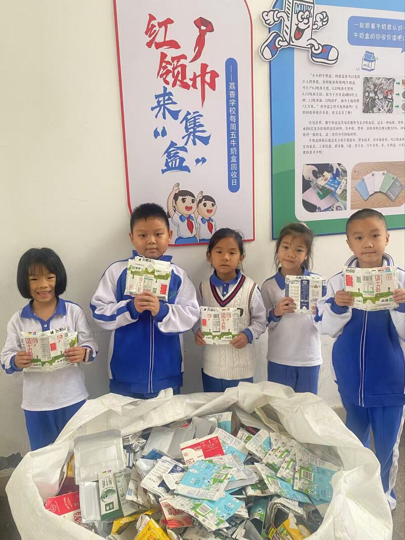 这次活动不仅是面向社区的一次奶盒资源回收、垃圾分类宣讲,也是荔香学校长期开展牛奶盒回收活动成果的一次集中展示。