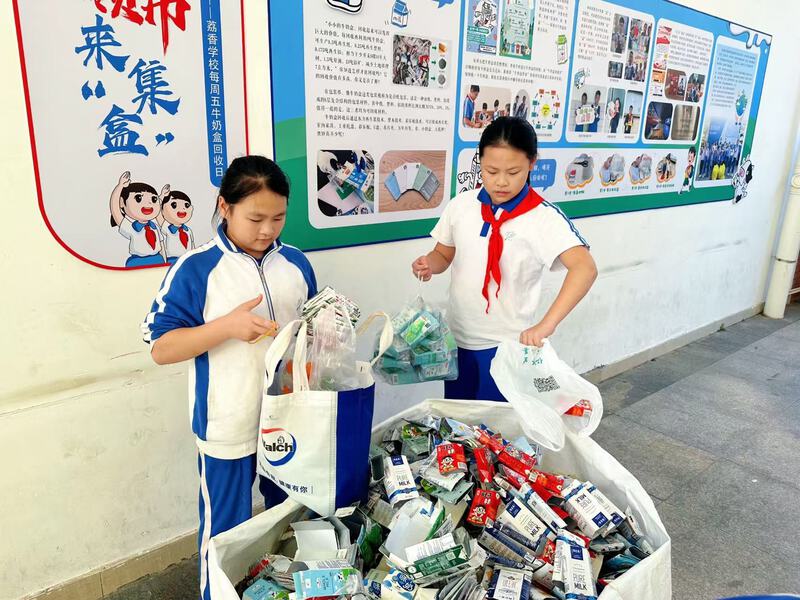 “在垃圾分类过程中,牛奶盒的回收利用一直是痛点。”荔香学校副校长杨征介绍,牛奶盒数量庞大,残留的牛奶会发酵产生异味,废品回收站不愿意直接收购零散牛奶盒,这都增加了居民进行牛奶盒回收的难度。