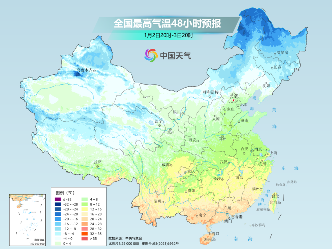 2025年开年,全国大部分地区气温仍维持偏暖态势。1月1日至3日,一股弱冷空气将影响中东部地区,以大风降温为主。内蒙古中东部、东北地区等地将出现4级左右偏北风,阵风可达6-7级,局地8级;气温普遍下降4-6℃,内蒙古东北部、黑龙江局地降温可达8℃左右,南方地区降温2-4℃。未来十天,全国大部分地区气温将继续保持偏高水平,但昼夜温差较大,部分地区可达15℃以上,提醒公众注意防寒保暖。