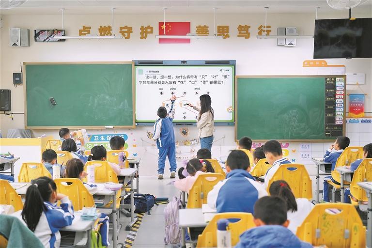 ▲1月2日,在坪山区未来学校一年级教室,学生上台做题。深圳晚报记者 严文婷 摄