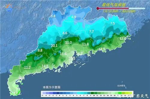 具体来说,6-7日,广东大部分地区晴间多云,粤北和珠三角北部最低气温在3-6℃,南部沿海地区10-12℃,其他地区7-10℃。