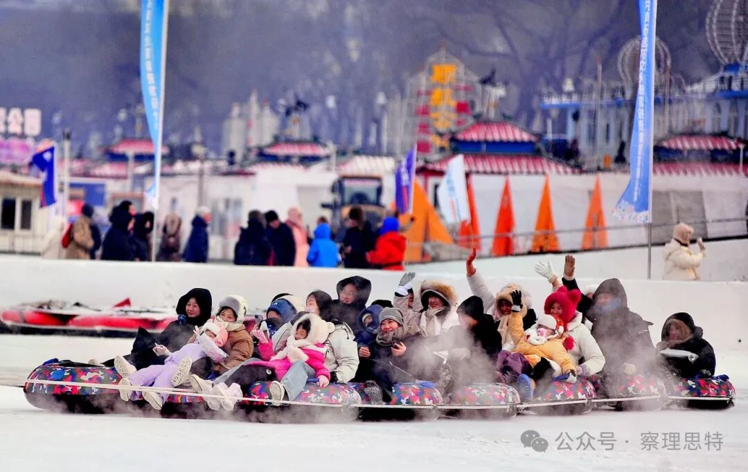 ▲2025年1月1日,哈尔滨市松花江冰雪嘉年华内,许多南方游客在游玩。图源:CFP