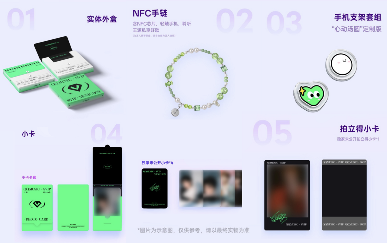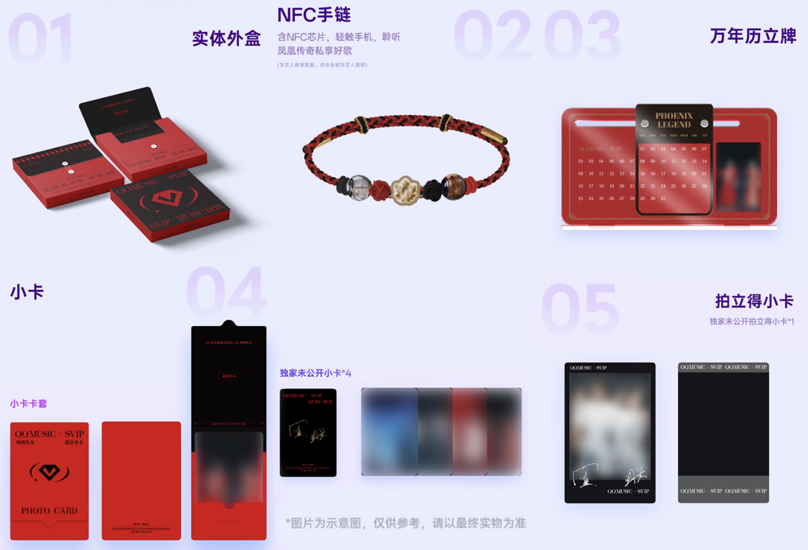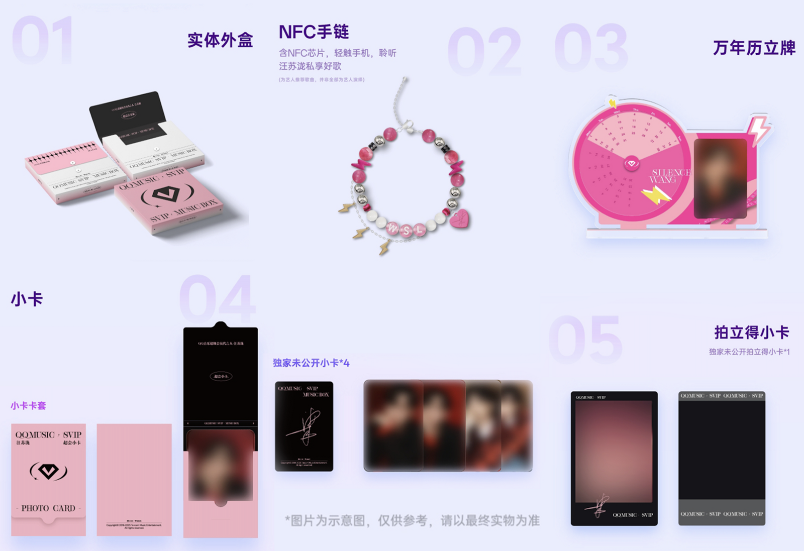 尤为令人惊喜的是,QQ音乐特意为本次超级会员代言人的集体亮相,推出了代言人超会年卡音乐盒套餐,内含独家小卡、拍立得小卡、实体周边等多重惊喜。特别是王源、凤凰传奇、汪苏泷的音乐盒内含配备NFC的独家幸运手链,檀健次的音乐盒则搭配了NFC的卡祖笛挂件,这些集时尚与科技于一身的音乐潮流周边,无疑将成为年轻人展现个性、引领潮流的绝佳配饰。
