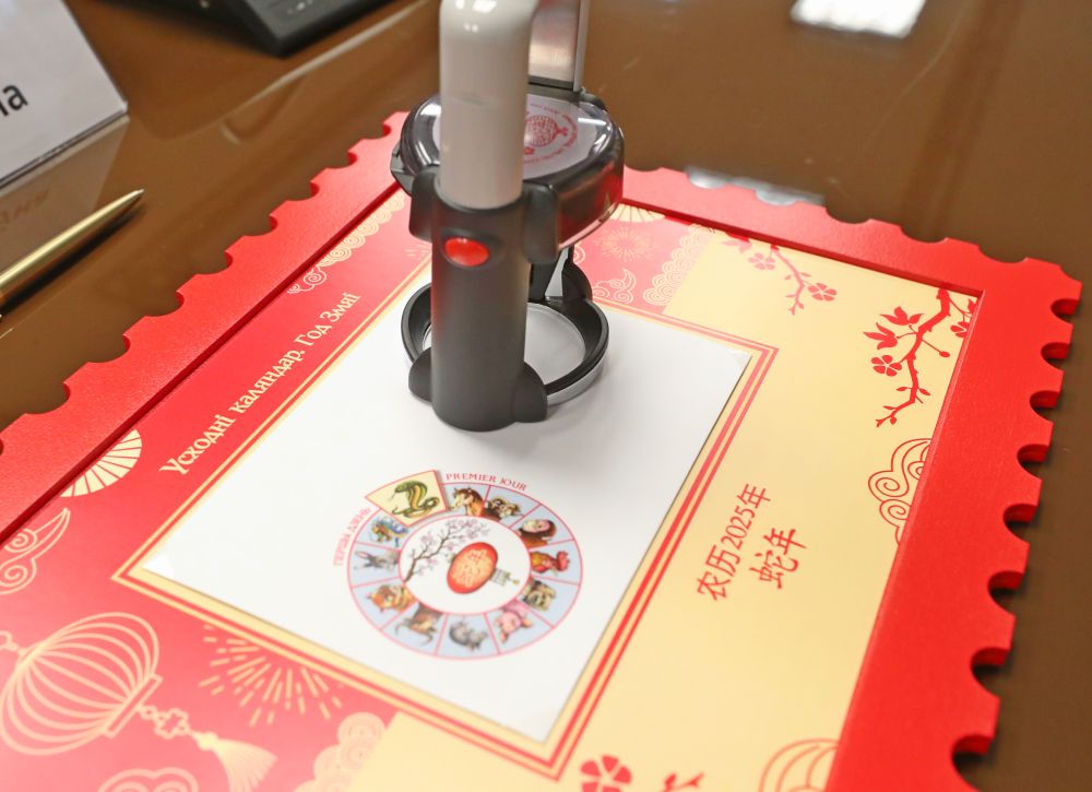 白俄罗斯《东方历法:蛇年》邮票和首日封发行仪式1月15日在白国立大学孔子学院举行。《东方历法》系列邮票由白俄罗斯通信与信息化部和白俄罗斯国立大学孔子学院共同推出,今年是按照十二生肖顺序推出的第六套该系列邮票。