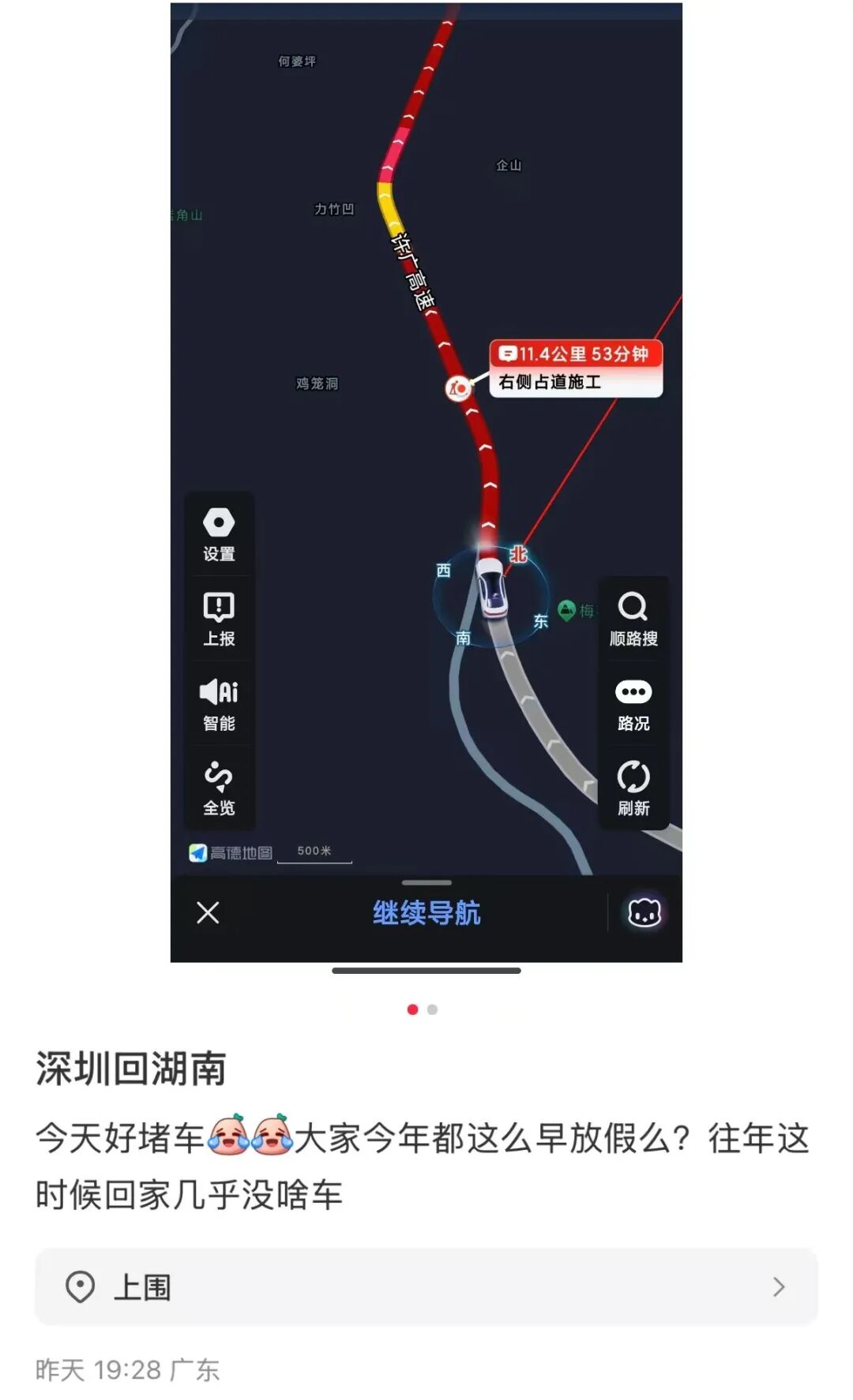 有网友说自己在沪昆高速上