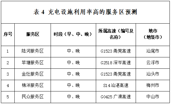 以及充电设施利用率高的服务区