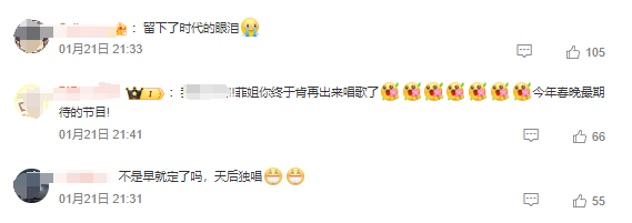 据悉,王菲曾四次登上春晚舞台,时间和表演曲目分别为:1998年《相约九八》、2010年《传奇》、2012年《因为爱情》、2018年《岁月》。