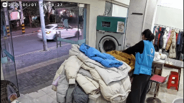 湖南张家界一家干洗店正常营业时,突然遭遇一枚窜天猴的“袭击”。