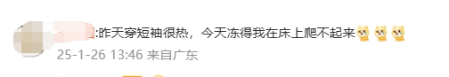 寒潮的风终于吹到了广东!据@广东天气,1月26日11时,受冷空气影响,广东多地降温幅度达到10℃以上,其中变温最厉害是郁南,24小时速降14℃。