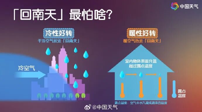 至于回南天,虽露点温度升高,但因冷空气“补充及时,大范围潮湿难现,但背阴处或短暂潮湿,建议适时关窗防潮。