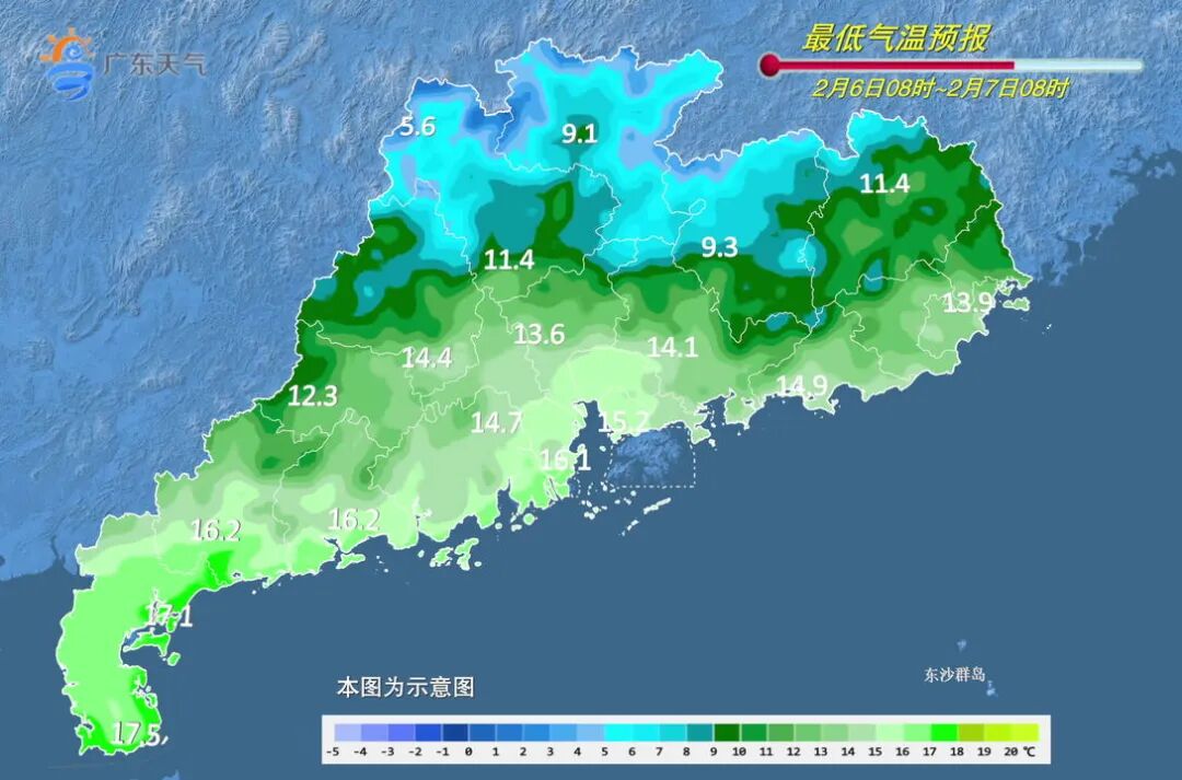 7日冷空气携雨南下,中北部气温骤降3-5℃,9日早晨将现过程最低温,粤北山区再度跌至零下。