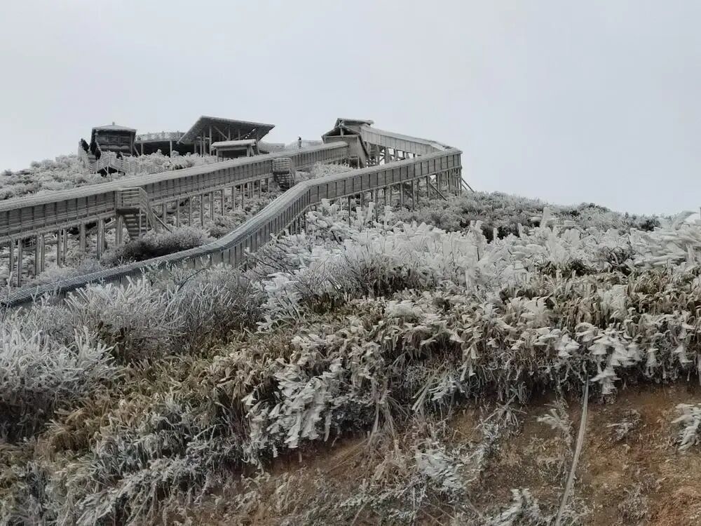 广东省气象部门观测,截至8日9时,粤北局地气温在5℃-7℃左右,高海拔山区出现低于0℃气温,其中连山金子山顶气象站在8日早晨录得-5℃的低温,当地出现雾凇、冰挂现象。