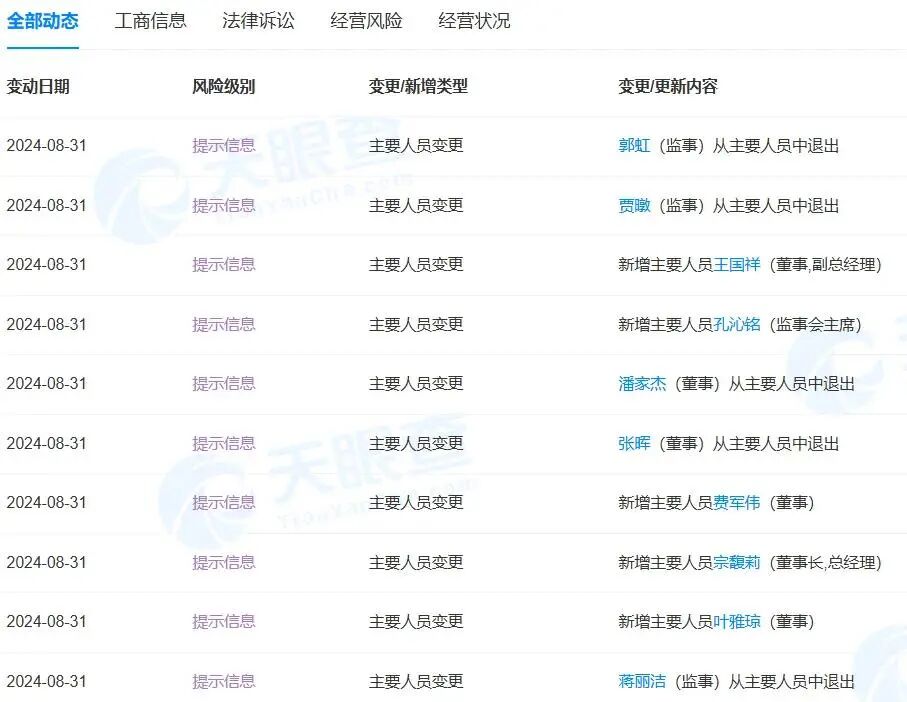 同时,张晖、吴建林等多名高管退出董事、监事职务,新增叶雅琼、费军伟等为董事,王国祥为董事兼副总经理。