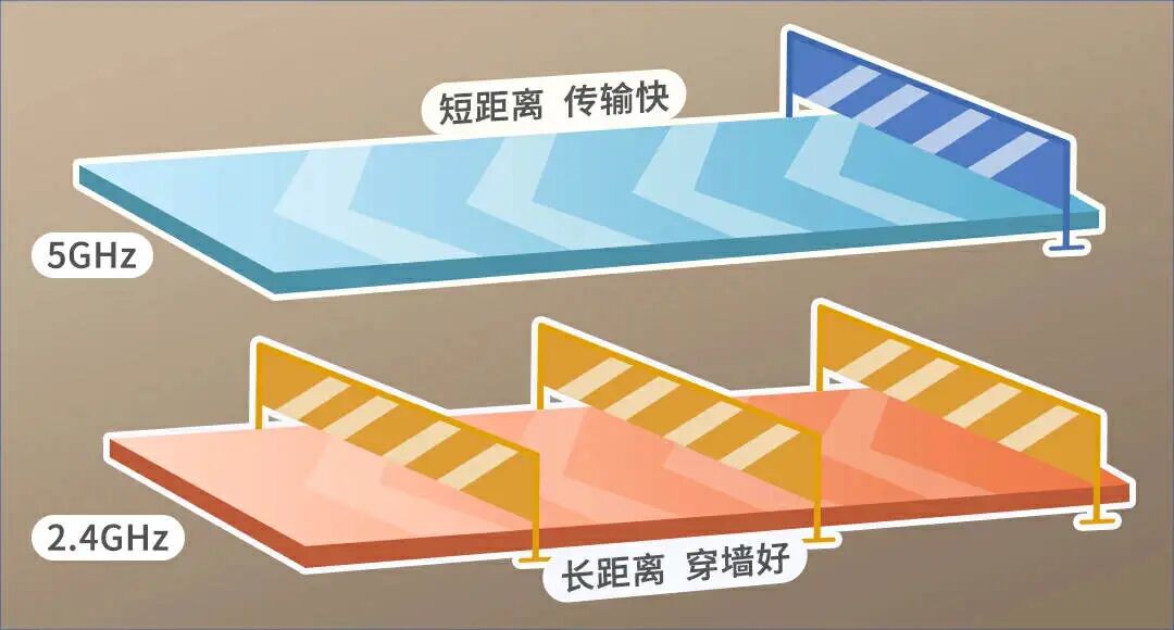 由于2.4GHz频段和5GHz频段有不同的技术特性,这两种频段各有侧重,在不同使用场景有着不同的“功效”。