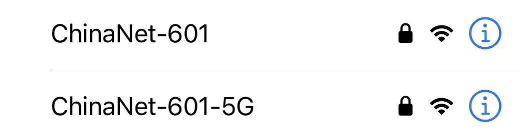 一般情况下,连接Wi-Fi时,看到有两个一样的Wi-Fi名称,不带“5G”标识的那个就是2.4GHz频段的信号,带“5G”标识的就是5GHz频段的。