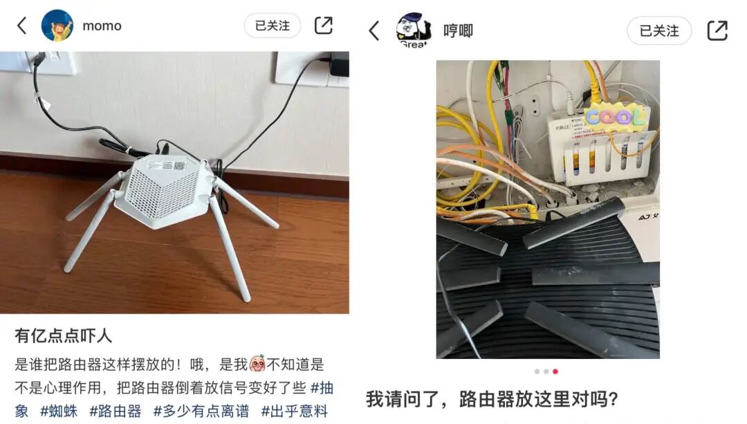 不少网友都晒过自家路由器的奇特造型。有网友把路由器摆成个“大蜘蛛”,也有网友干脆把天线扣在路由器背面,那么,不同造型真的会影响信号吗?