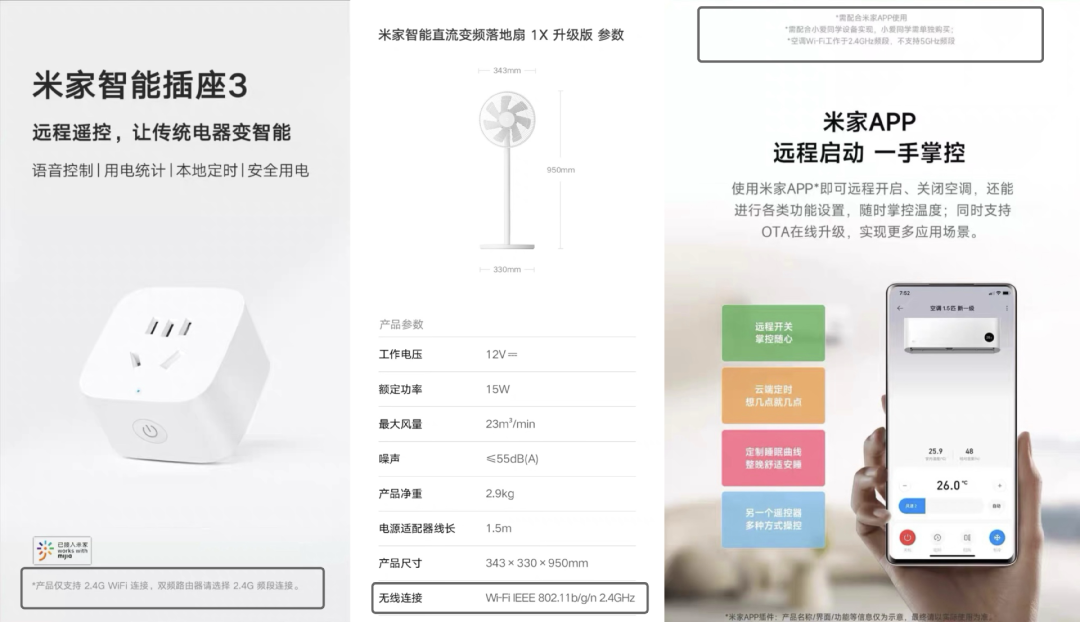 许多家居设备都运行在2.4GHz频段上|图源:淘宝网,小米官方旗舰店