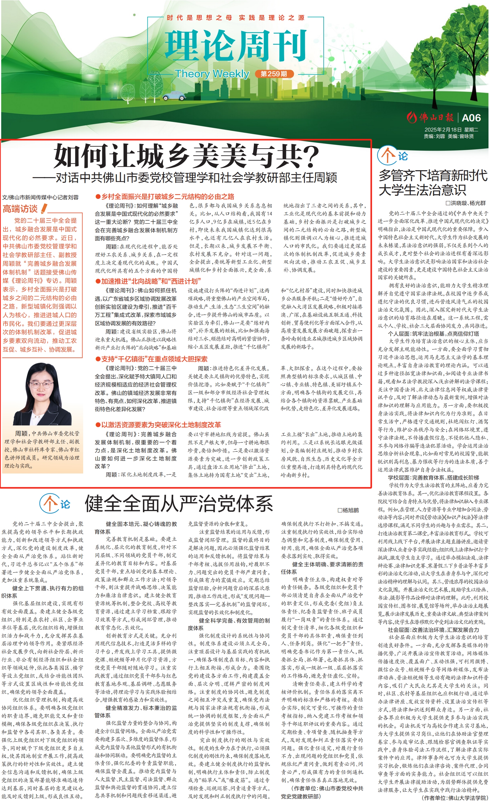 《理论周刊》:佛山如何抓住机遇,以广东省城乡区域协调发展改革创新实验区建设为牵引,推进“百千万工程”集成式改革,探索市域城乡区域协调发展的有效路径?