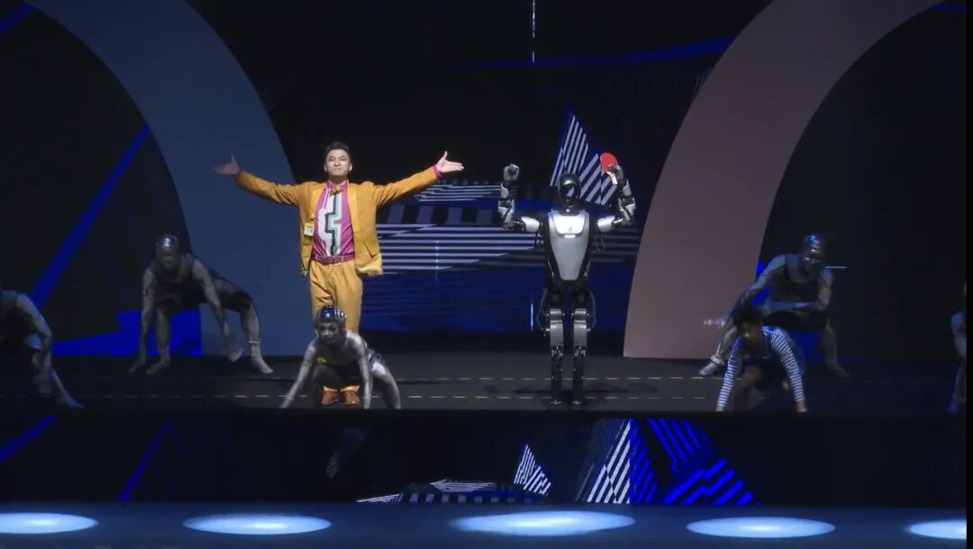 “夸父”挥拍击打乒乓、与人类演员互动