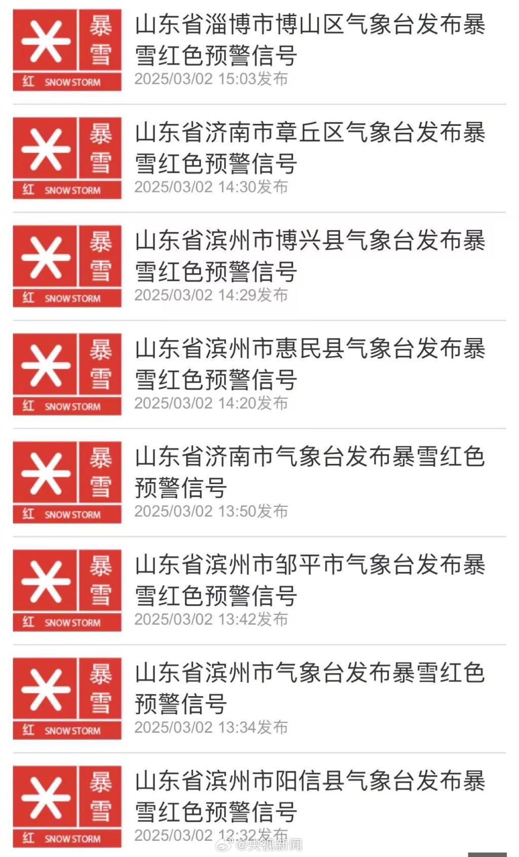 3月2日消息,山东省气象台发布暴雪橙色预警,部分地区发布暴雪红色预警。目前,降雪仍将持续,菏泽北部、聊城南部、鲁中和半岛北部地区有大到暴雪,聊城北部、德州、滨州和东营有小到中雪,其他地区有中雨转雨夹雪。