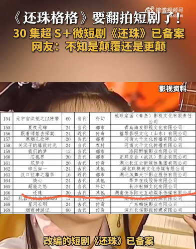 如今,多家媒体称《还珠格格》将翻拍短剧,引发关注。