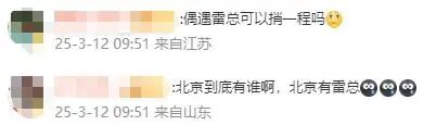 对此,网友们也表示:“偶遇雷总可以捎一程吗”“准备下班,偶遇去”“那我到北京,看到一辆鹦鹉绿我都得趴车上看看,是不是雷总”。