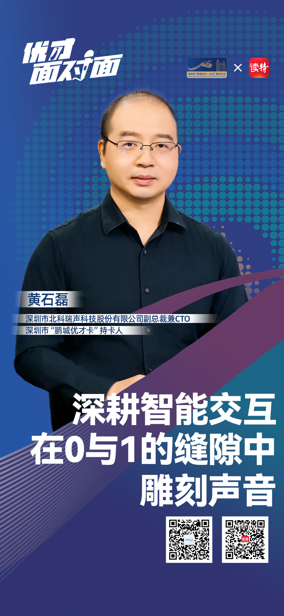 本期优才面对面,邀请到深圳市北科瑞声科技股份有限公司副总裁兼CTO、深圳市“鹏城优才卡”持卡人黄石磊讲述他的科研故事。