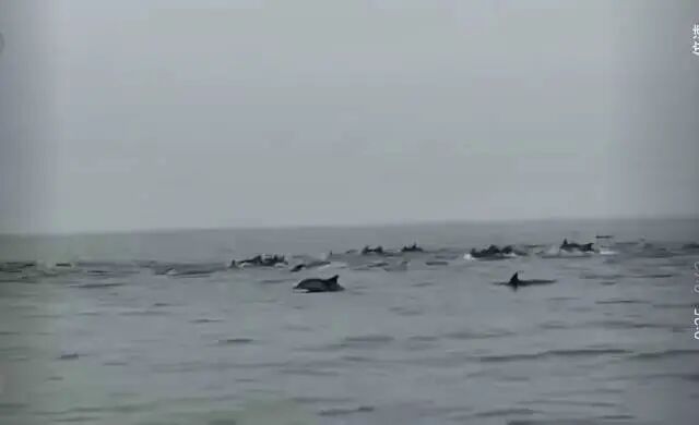 3月14日下午16时许,深圳市深汕特别合作区小漠海域,100多头海豚“集体出游”,刚好被出海渔民遇见拍了下来,场面非常壮观。