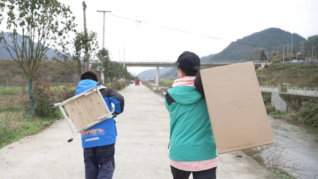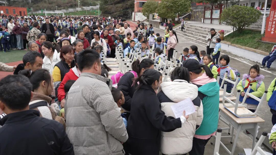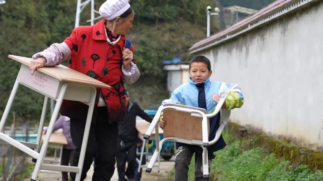 发放现场,孩子们如获至宝地将书桌扛了起来,清脆的笑声回荡在山间。“我有自己的书桌啦!”三年级学生小伟抚摸着崭新的小书桌,在小书桌发放仪式现场兴奋地跳起来。