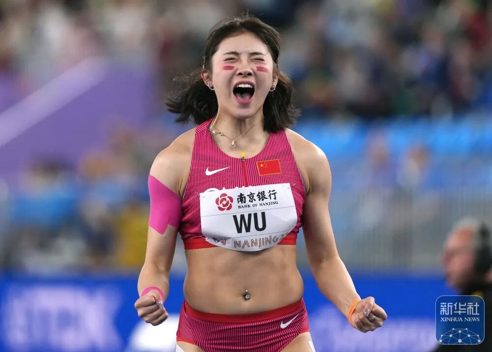 吴艳妮打破全国纪录后庆祝。新华社记者 李博 摄