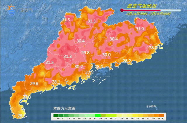 广东大部也是晴热天气“控场”。25-26日,广东大部晴到多云,天气干燥,气温继续上升,最高气温超30℃的范围将有所扩大,大部分市县早晚有轻雾或雾。