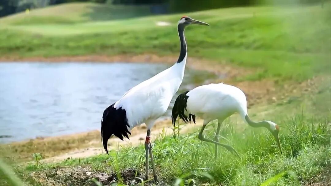 球童邓晶晶回忆起初次见到丹顶鹤的情景,还激动得不行:“它们飞到湖边,在那里待了很久,很漂亮。看到它们脚上贴着标签,我才知道它们是丹顶鹤,是国家一级保护动物。”
