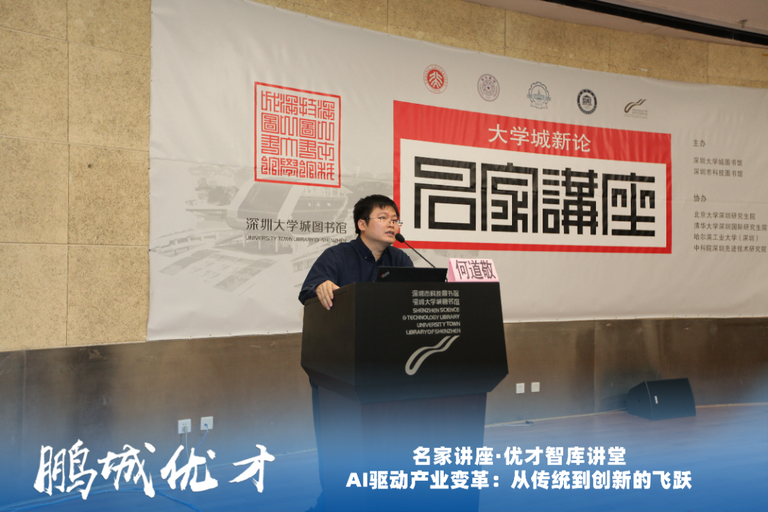 本次讲座特邀哈尔滨工业大学(深圳)计算机科学与技术学院副院长、教授、博导,深圳市“鹏城优才卡”持卡人何道敬,为现场观众带来一场关于人工智能大模型技术与实践的精彩分享。