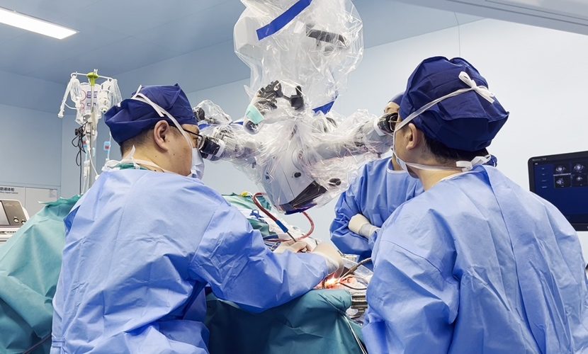 “肿瘤不断长大,导致脑室内的脑脊液循环受阻,形成颅内‘堰塞湖’,颅内压不断升高,随时会危及生命。”接诊的杜世伟教授说,当务之急是立刻进行手术治疗。但肿瘤巨大、血供丰富,与脑室壁粘连明显,要想完全分离、切除肿瘤,充满了挑战。杜世伟教授说,脑室内“地形”复杂,血管、神经组织密布,手术中稍有不慎就有可能大出血或是造成严重的功能损伤,加上阿玲还很年轻,因此,如何在切除肿瘤的同时,最大程度地保护脑功能是手术的最大难点。