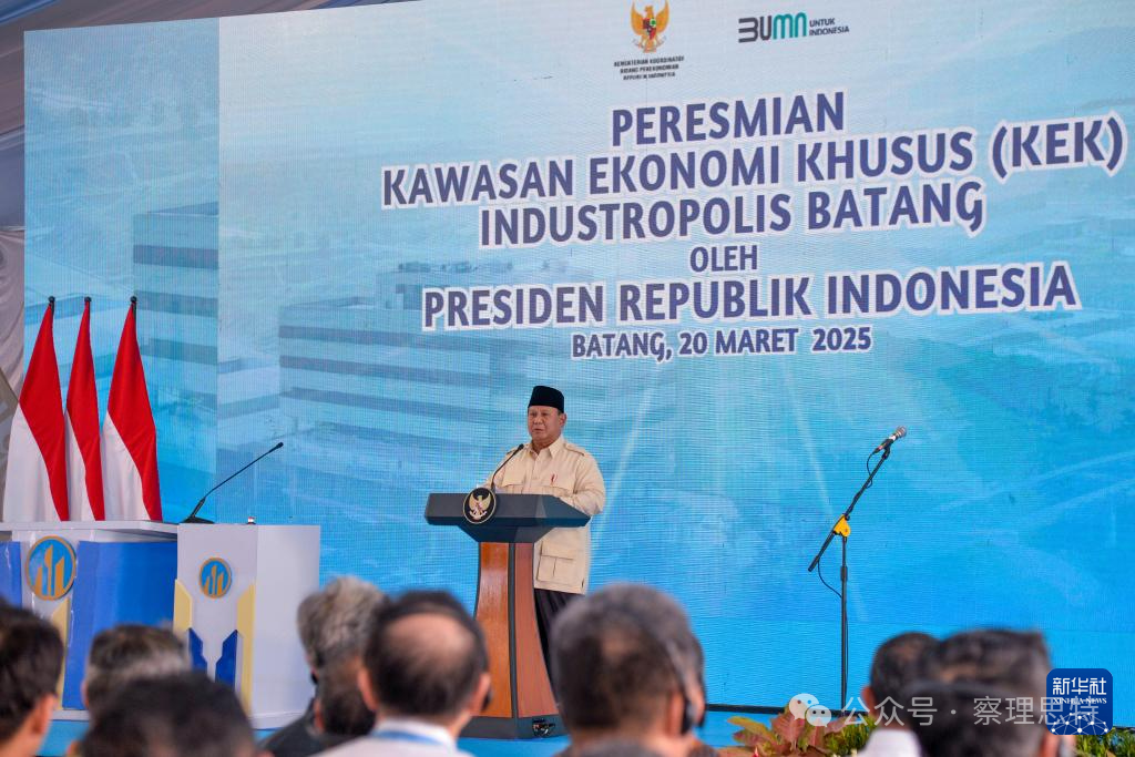 3月20日,在印度尼西亚中爪哇省,印度尼西亚总统普拉博沃·苏比延多在巴唐工业园经济特区启动仪式上致辞。新华社记者 徐钦 摄