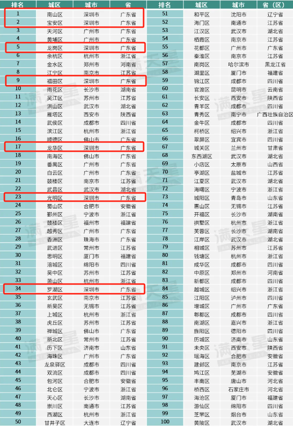 3月31日,赛迪顾问正式发布《赛迪创新百强区(2025)》报告,深圳的南山区和宝安区包揽全国前两名。