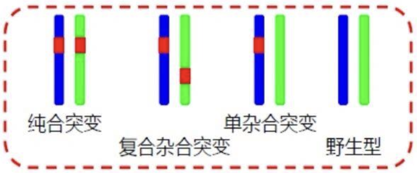 ●复合杂合型(发现两个不同的基因问题)