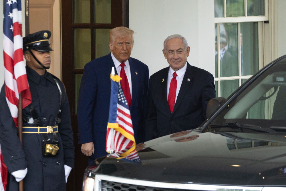 4月7日,美国总统特朗普在华盛顿白宫迎接到访的以色列总理内塔尼亚胡。新华社记者 胡友松 摄